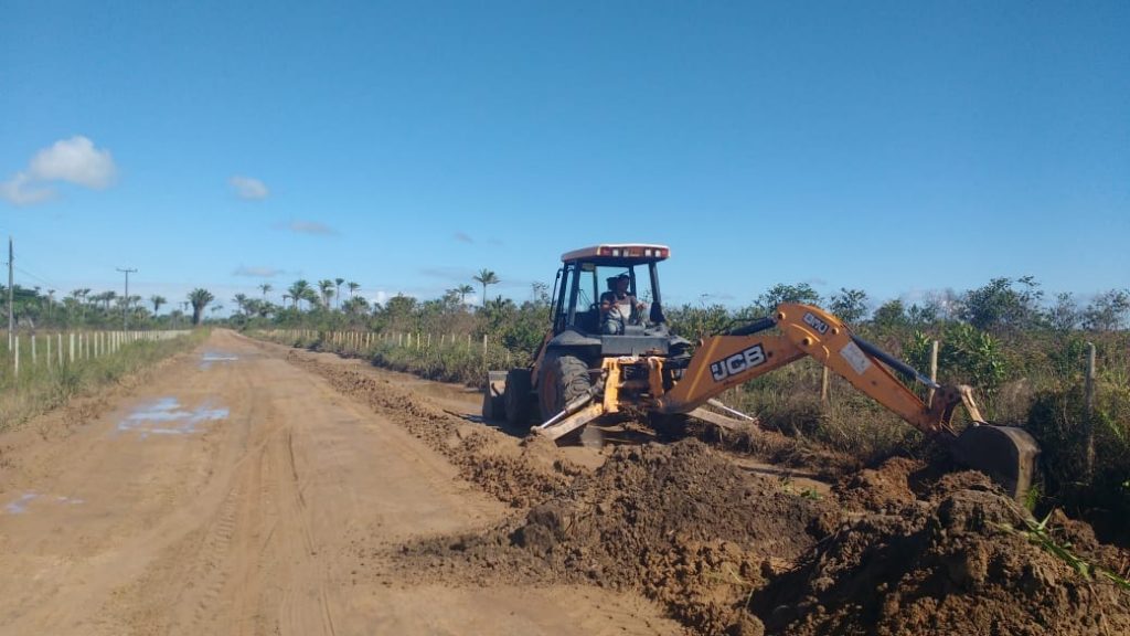 Nesta última terça-feira (10) os trabalhos se concentraram nas ruas e estrada que da acesso ao povoado de Taipu de Dentro. Uma retroescavadeira realiza a limpeza das margens da via e das saídas das águas das chuvas.