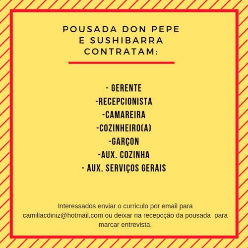 Está procurando emprego? Saiba que a Pousada Don Pepe localizada no centro do Distrito de Barra Grande está com diversas oportunidades de empregos ...