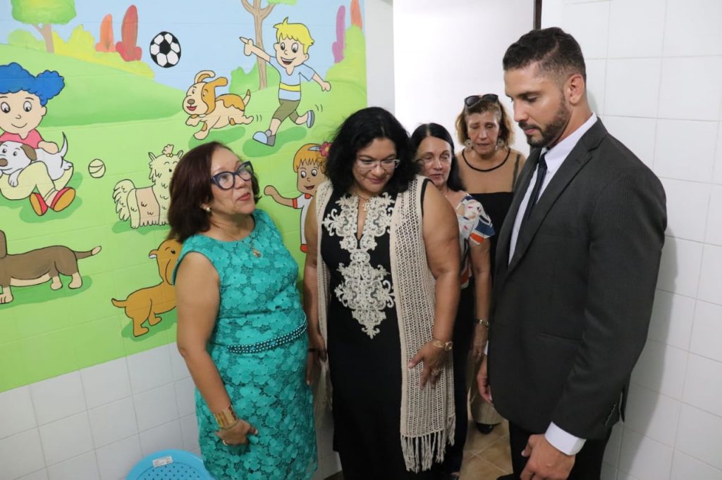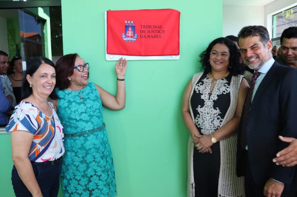 Representando o Presidente do Tribunal de Justiça da Bahia, Desembargador Gesivaldo Britto, a Desembargadora Joanice Guimarães – Presidente de honra do Núcleo Permanente de Métodos Consensuais de Solução de Conflitos (Nupemec) do TJBA – descerrou a placa de inauguração, acompanhada da Assessora Especial da Presidência para Assuntos Institucionais (AEP II) e Coordenadora do Nupemec, a Juíza Rita Ramos.