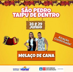 Essa é a segunda vez que a banda se apresenta no São Pedro de Taipu e deve agitar os forrozeiros presentes. A grade completa das bandas serão divulgadas em breve. O evento é uma realização da Prefeitura de Maraú, por meio da Secretaria de Turismo com patrocínio do Governo do Estado, por meio da BahiaTursa.