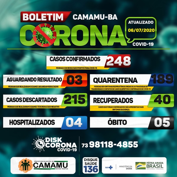 A Secretaria de Saúde de Maraú confirmou hoje, dia 06/07, os 4 primeiros casos positivos para COVID-19 de residentes no povoado de Tremembé ...
