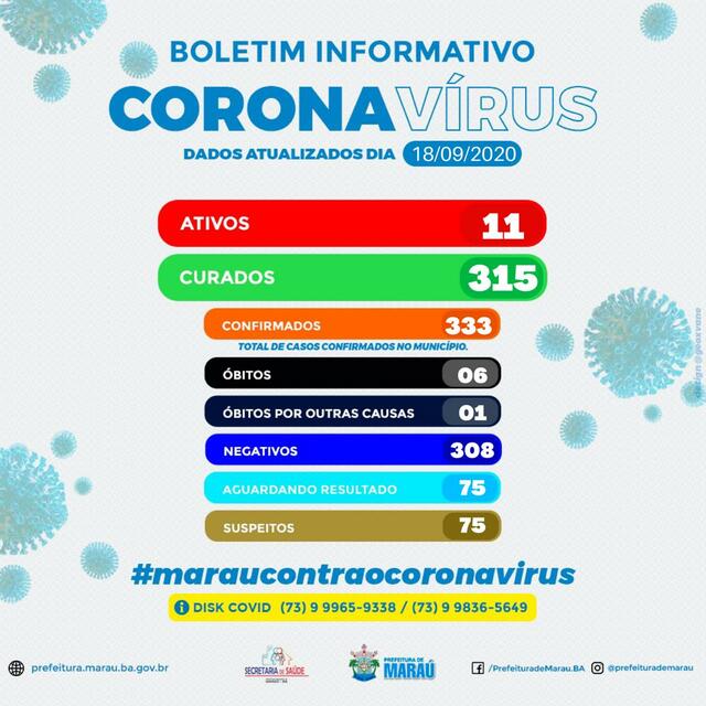 O município de Maraú segue sem novos registros de ativos de coronavírus de acordo com o boletim da Secretaria de Saúde desta sexta-feira,18. Vigilância ...
