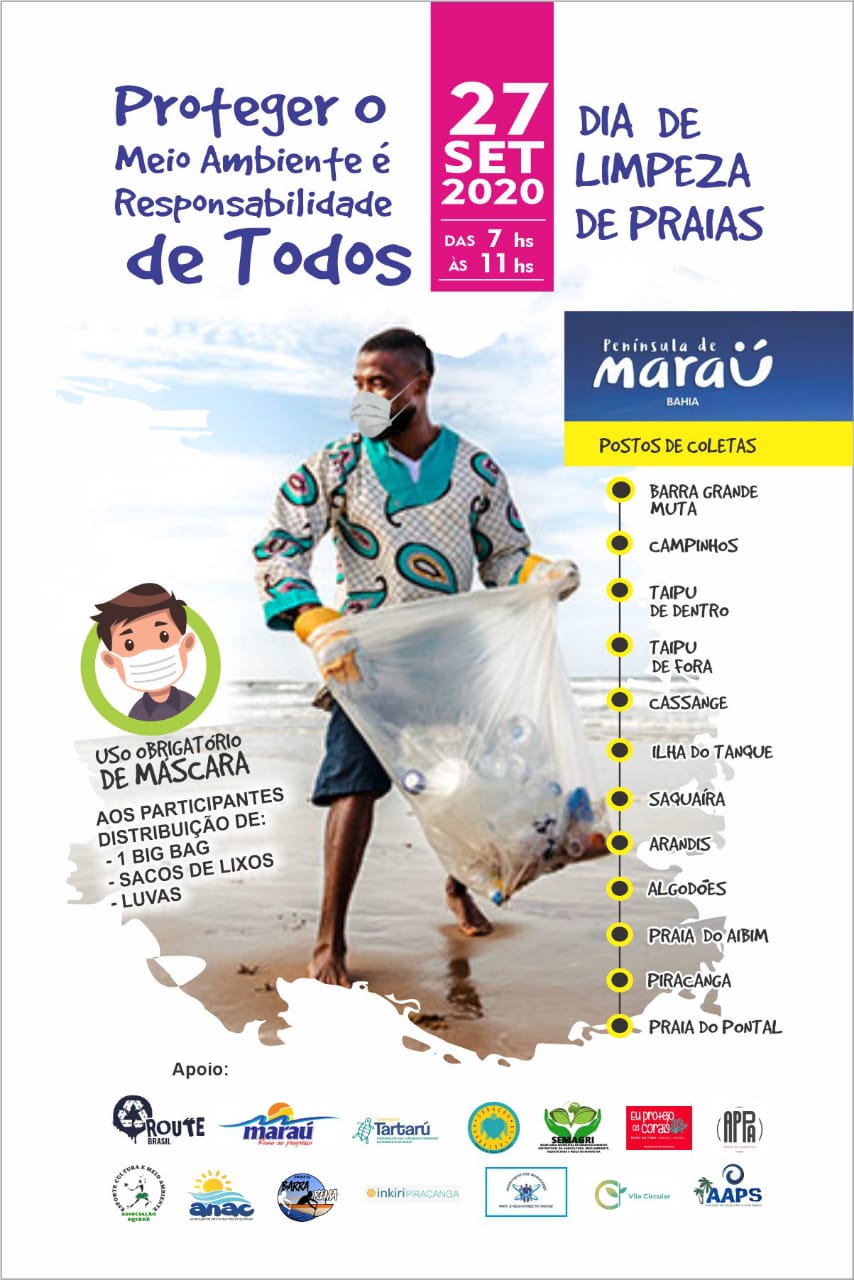 Somando esforços para combater a poluição em nossas praias ,as comunidades e poder público da península de Maraú realizarão no dia 27 de setembro, às 7h00 da manhã, um evento em homenagem ao dia Mundial de limpeza de praias. Nesse evento haverá coleta de resíduos nas praias da Península, com posterior triagem desse resíduo e encaminhamento para uma empresa de reciclagem de materiais.