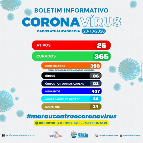 Maraú tem 26 casos ativos da COVID-19 e 365 curados de acordo com o boletim da Secretaria de Saúde desta terça-feira, 20. Foram ...
