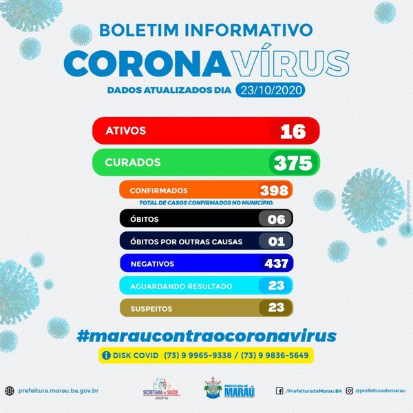 Maraú tem 16 casos ativos da COVID-19 e 375 curados de acordo com o boletim da Secretaria de Saúde desta sexta-feira, 23. Foram ...