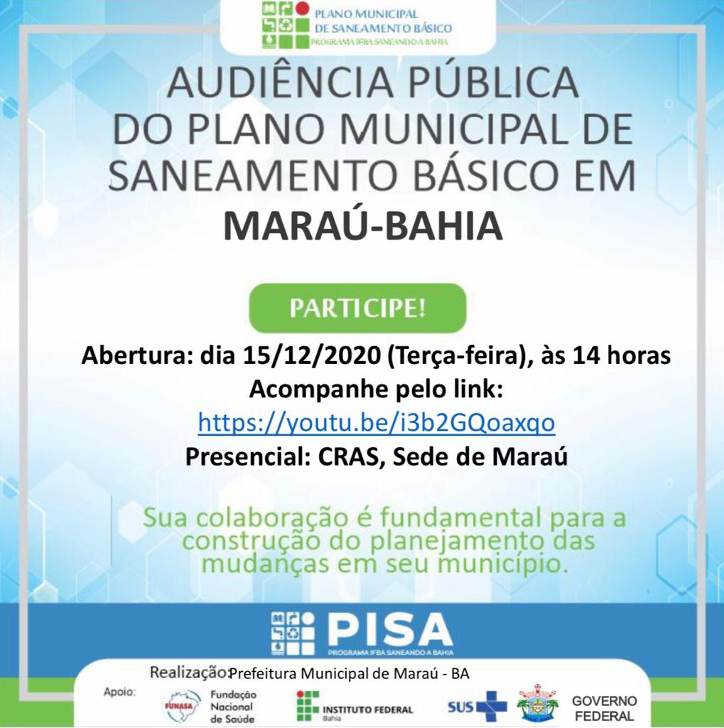 TERÇA, DIA 15, ACONTECE AUDIÊNCIA PÚBLICA SOBRE O PLANO DE SANEAMENTO BÁSICO DE MARAÚ