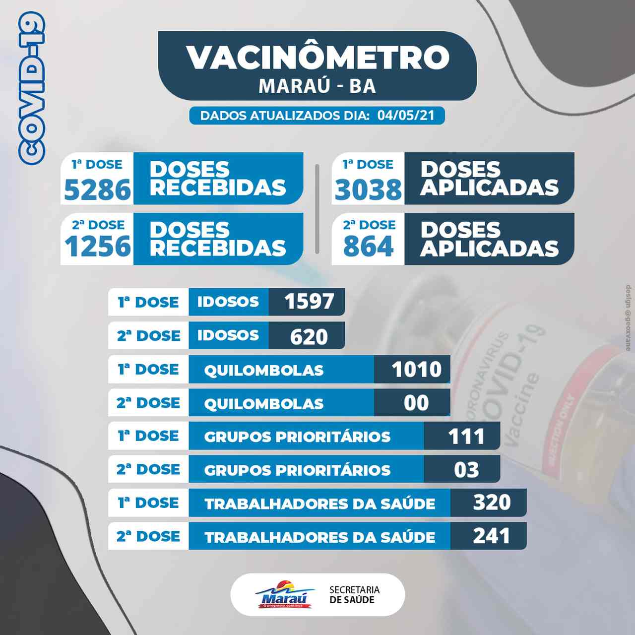 A Prefeitura Municipal de Maraú, através da Secretaria Municipal de Saúde, divulga o novo informativo com os números atualizados sobre a vacinação contra ...