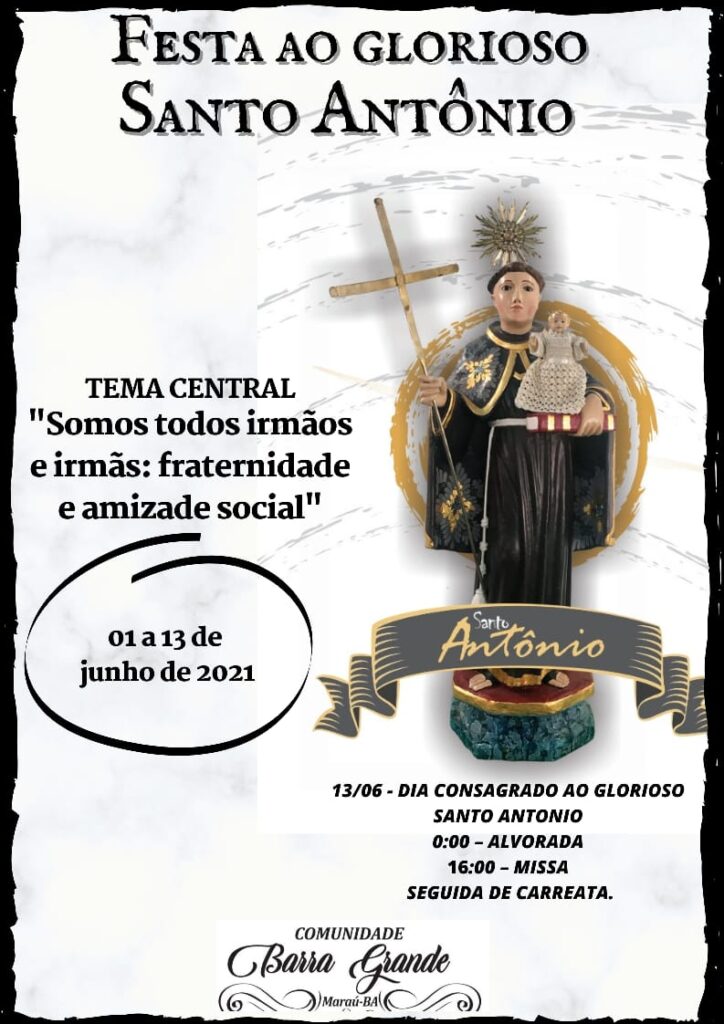 Neste mês de junho, o distrito de Barra Grande celebra o dia do padroeiro Santo Antônio e a programação do trezenário e da festa religiosa inicia na próxima terça-feira, 01/06. Neste ano, o tema será “Somos todos irmãos e irmãs: fraternidade e amizade social”. O trezenário encerra no dia 13, com alvorada meia-noite, missa às 16h, seguida de uma carreata.