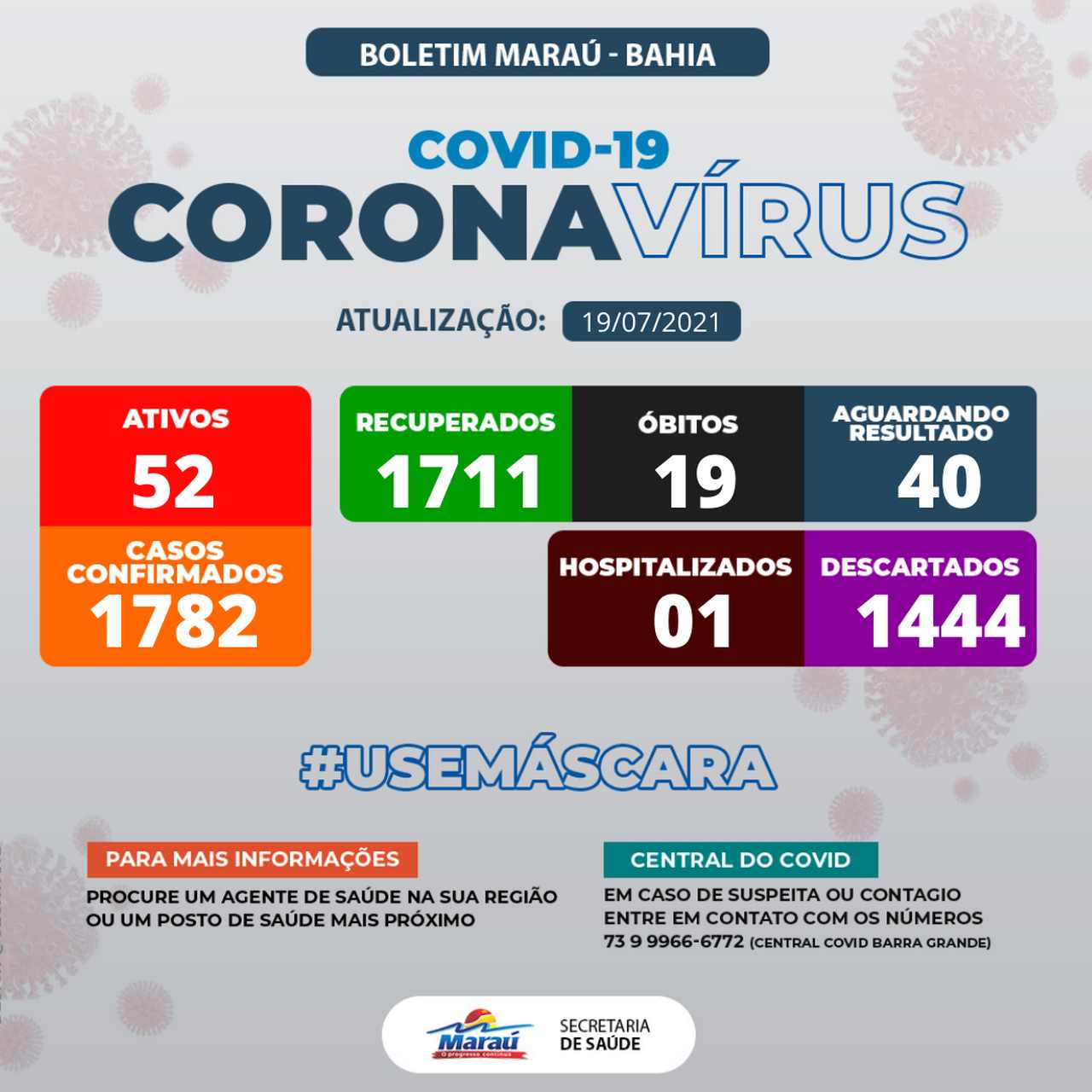49 CASOS ATIVOS DA COVID-19 EM MARAÚ; SENDO 22 ATIVOS EM BARRA GRANDE