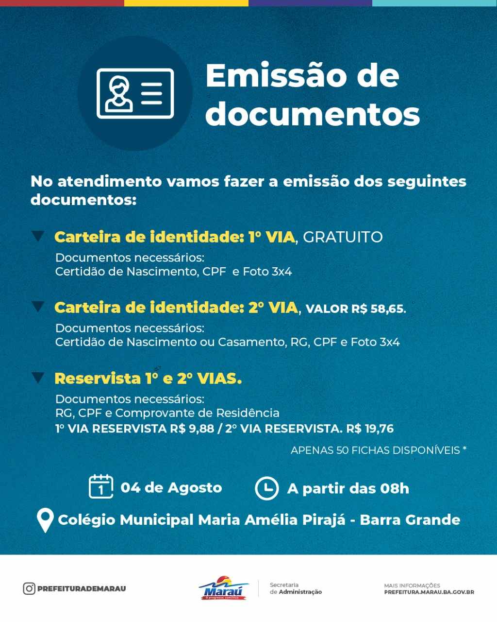 A prefeitura de Maraú, através da Secretaria de Administração com a supervisão de identificação e documentação, levará para o distrito de Barra Grande, ...