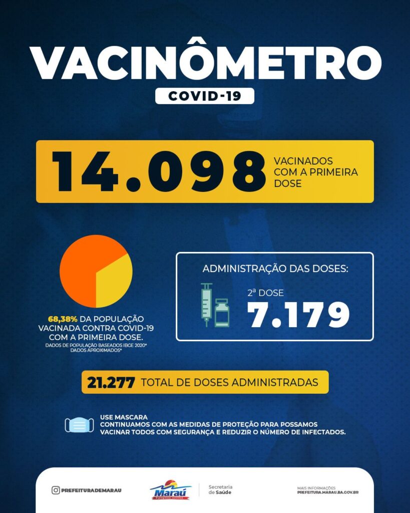 O município de Maraú ultrapassou a marca de 14 mil pessoas vacinados com a primeira dose contra a COVID-19 nesta semana. Mais de 7 mil pessoas já tomaram a segunda dose do imunizante e 21.277 doses foram administradas pelas equipes de saúde do município.
