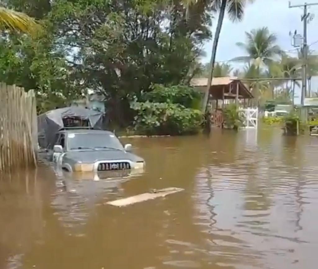 A situação é também é dramática na Península de Maraú. Imagens que circulam pelas redes mostram como a chuva forte provocou a destruição de estradas e fez com que ruas inteiras ficassem submersas devido ao grande volume de água.