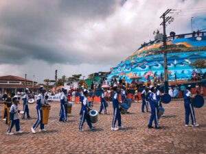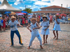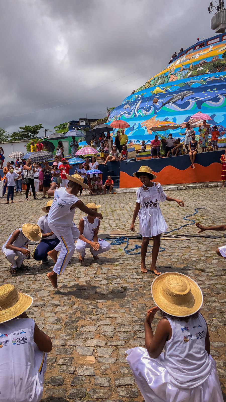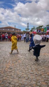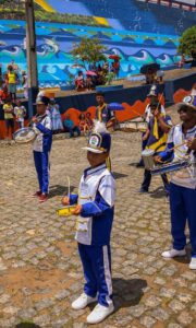 Pelotão da Secretaria de Desenvolvimento Social, através dos jovens do Serviço de convivência e fortalecimento de vínculos com apresentações da puxada de rede, maculelê e samba de roda com o professor Edcarlos.