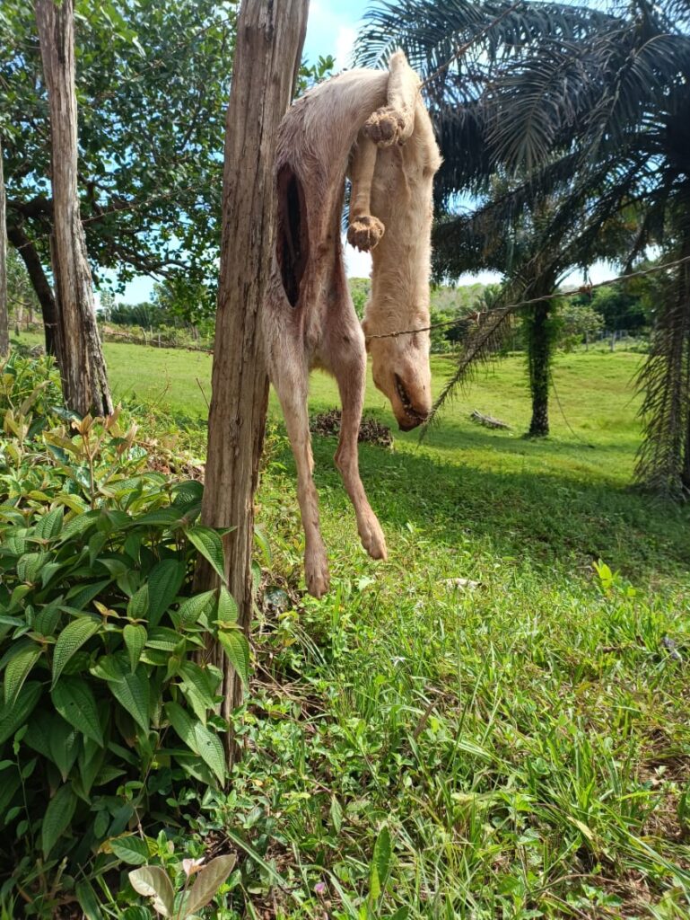 Após investigações, um homem conhecido por ‘Regi’ que já havia informações que teria decaptado um cão, a pedido de sua companheira há cerca de quatro meses. O homem confessou que matou o cachorro com uma faca, tipo peixeira, alegando que o animal teria latido em sua direção, na tentativa de morde-lo, ao ser perguntado sobre outro cão que ele havia decaptado, ele confesou que matou com facão.