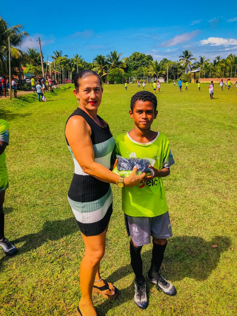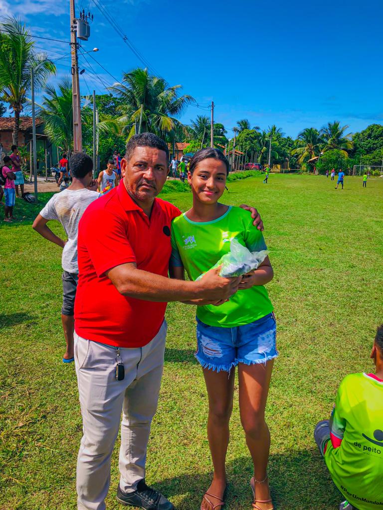 O prefeito Manassés Souza ao lado da primeira-dama Rose Moreno também participou da entrega dos kits e destacou o trabalho de sua gestão no setor de esportes.