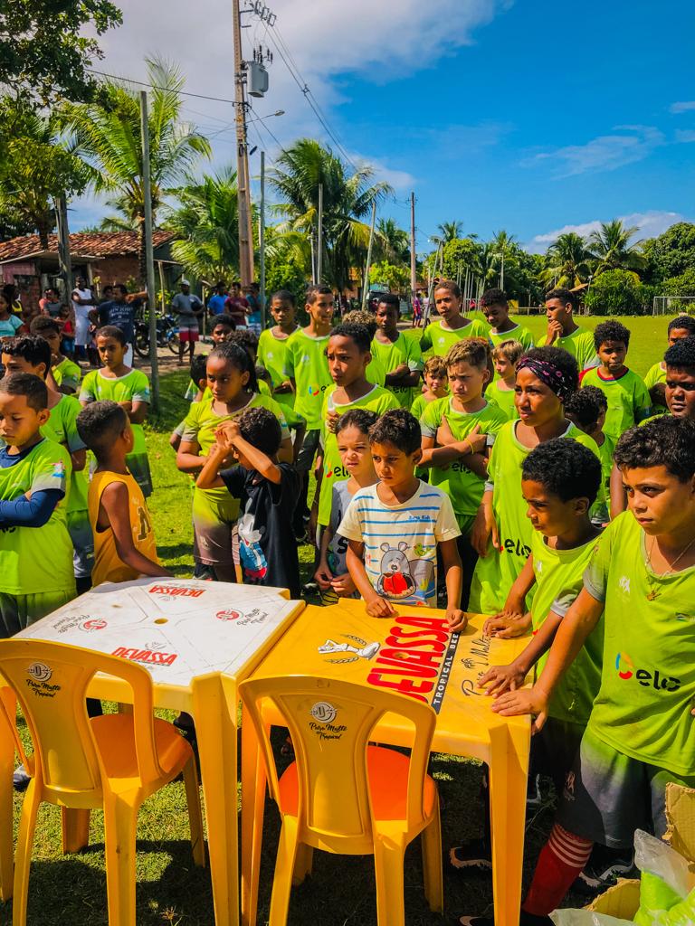 Os alunos beneficiados pelo Projeto Oportunidade Através do Esporte – Núcleo Taipu de Dentro receberam, gratuitamente, no último sábado, 28/05, a entrega do segundo lote de fardamentos. As crianças receberão camisa, short e meião para utilização durante as atividades do projeto.