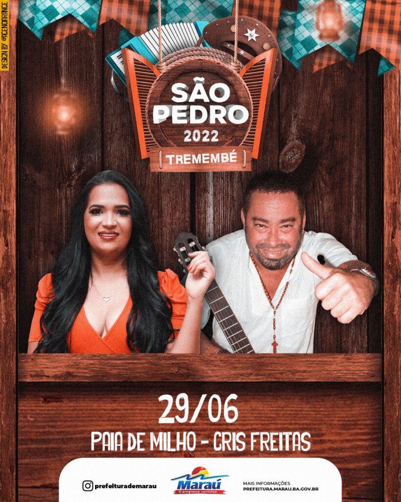 Em Tremembé, a festa começa hoje, a partir das 22h e quem fará a animação do público será a banda de forró Paia de Milho e encerrando a festa com o show da cantora Cris Freitas. A festa é uma realização da Prefeitura Municipal de Maraú, por meio do Prefeito Manassés Souza, com apoio da Diretoria de Eventos do município, do Secretário de Infraestrutura Adson e com a produção da Ramos Simbora Produções.