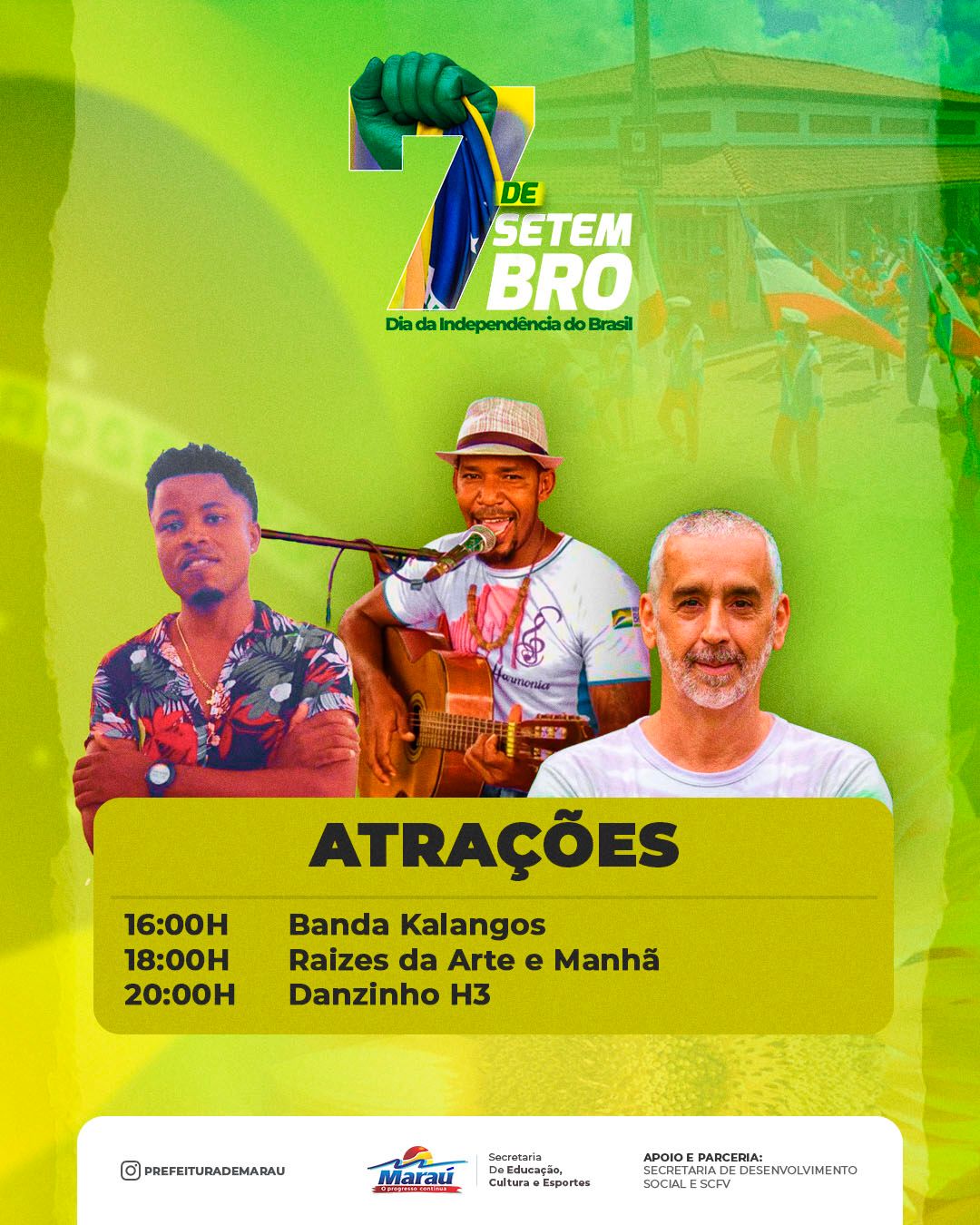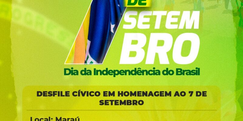 A Prefeitura de Maraú, por meio da Secretaria de Educação, Cultura e Esporte, convida você para prestigiar o desfile cívico em comemoração aos 200 anos de independência do Brasil.