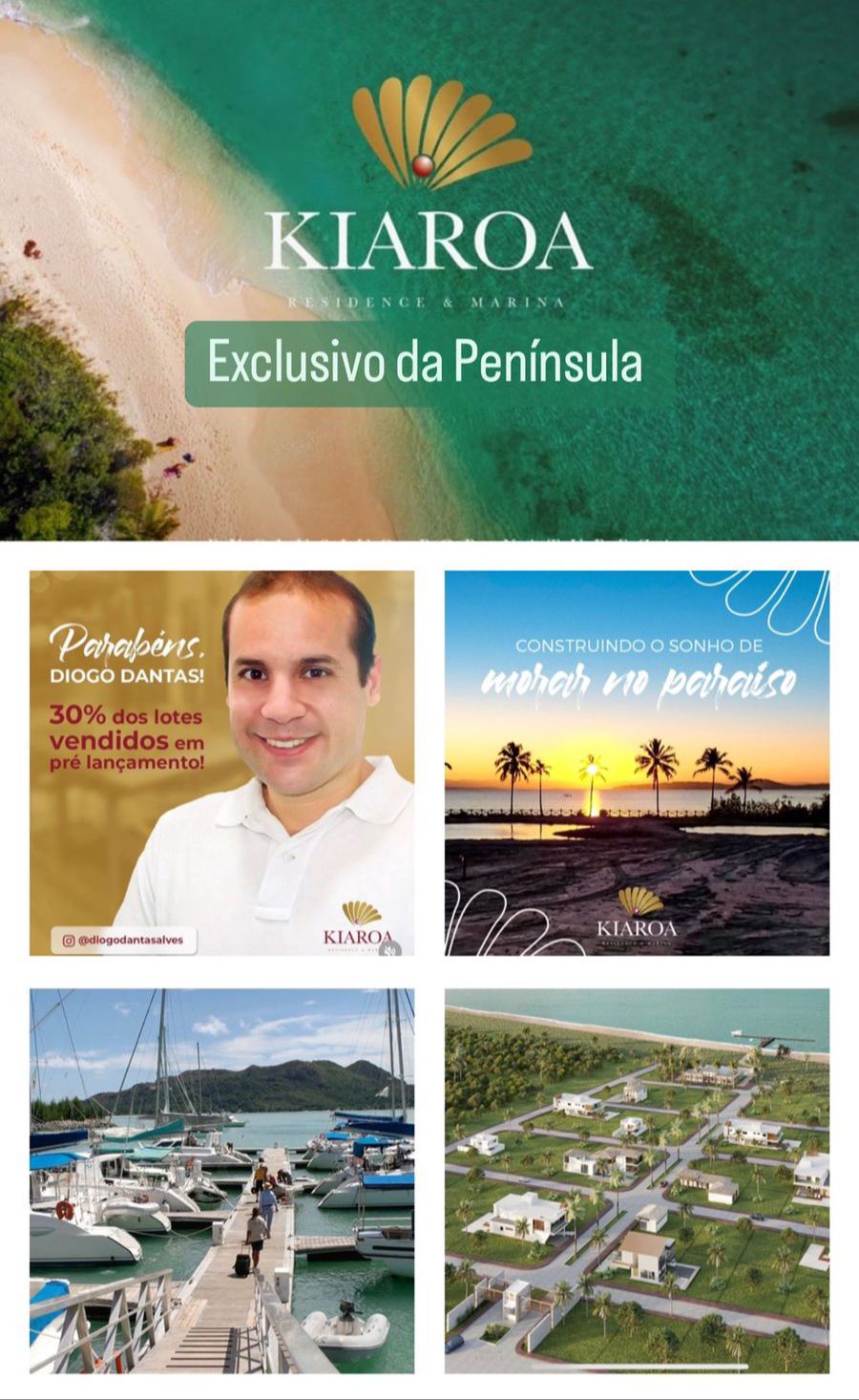 Um novo Empreendimento tem aquecido o Mercado Imobiliário da Península de Maraú. Trata-se do lançamento do condomínio de alto luxo Kiaroa 1, localizado em Taipu de Dentro. O corretor e empresário Diogo Dantas, 38 anos, tem sido destaque em vendas, onde vendeu no lançamento quase 40% do Empreendimento.