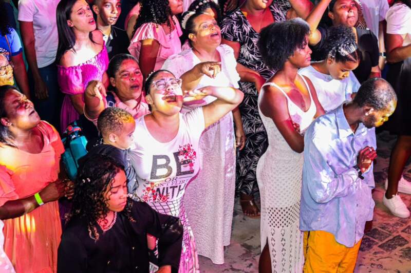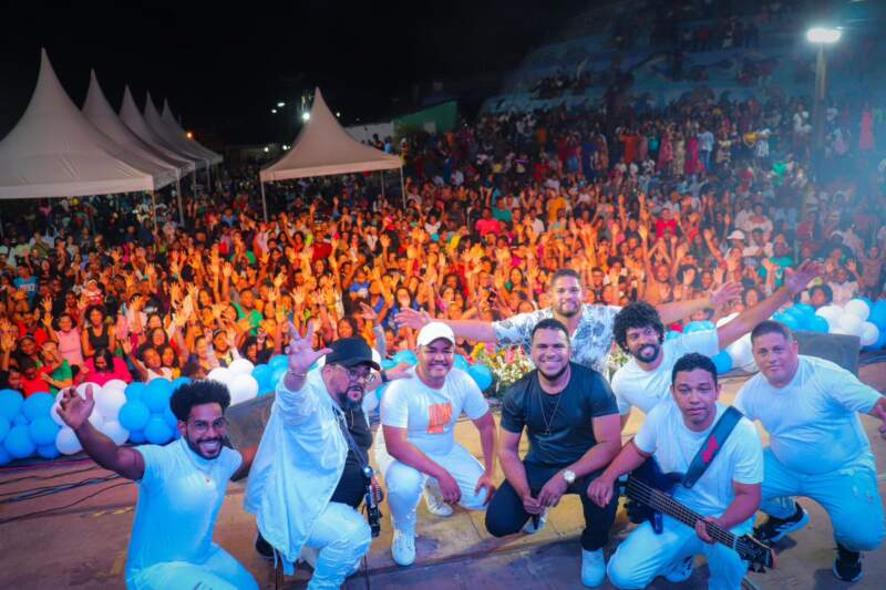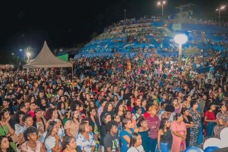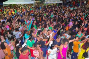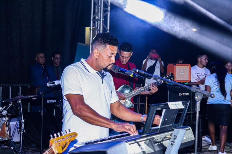 Pastores, músicos e membros religiosos subiram ao palco na praça do Quiosque na Sede no evento realizado pela Prefeitura Municipal e da Oplemm – Ordem de pastores e lideres evangélicos do município de Maraú.