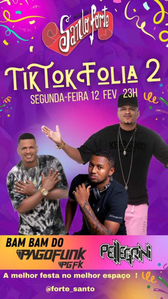 Segunda dia 12 é a vez de BamBam da Banda PAGOFUNK que traz num Show Inédito um super repertório animado na Festa TIKTOK FOLIA 2