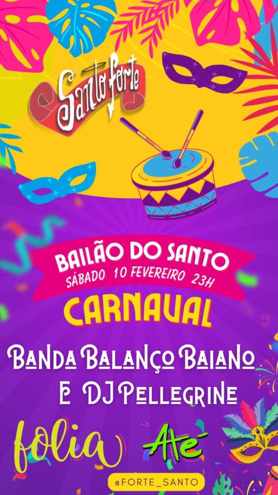 E para entrar no clima, além das Bandas e do Dj Pellegrine, uma super decoração de Carnaval te espera no Santo Forte e no sábado terá ainda Make Facial para os foliões.