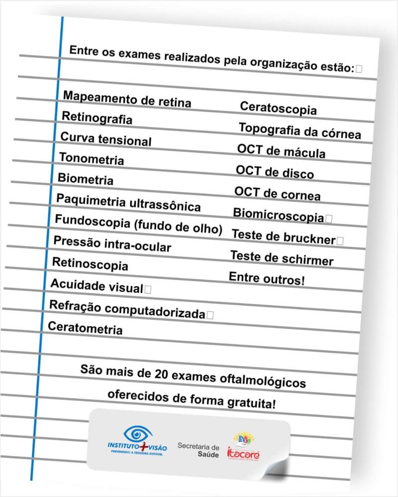 Ao todo serão mais de 20 exames oftalmológicos oferecidos de forma gratuita!