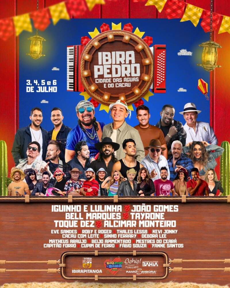 A Prefeitura de Ibirapitanga, a cidade das águas e do cacau, divulgou oficialmente a grade completa do IbiraPedro 2025, um dos maiores eventos juninos da Bahia. A festa acontecerá nos dias 4, 5 e 6 de julho, na Praça de São Pedro, com expectativa de atrair cerca de 30 mil pessoas por noite. A grande novidade é que este ano o evento contará com mais um dia de celebração, no dia 3 de julho, shows especiais após a Feira da Agricultura Familiar e Economia Solidária.