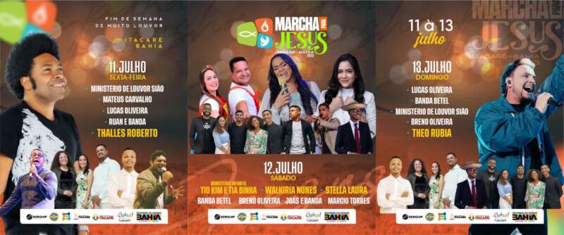 A cidade de Itacaré será palco de um dos maiores eventos de fé e adoração do sul da Bahia neste final de semana. A Marcha para Jesus 2025 acontece nos dias 11, 12 e 13 de julho, reunindo igrejas, famílias e toda a comunidade para momentos de louvor, oração e unidade cristã.