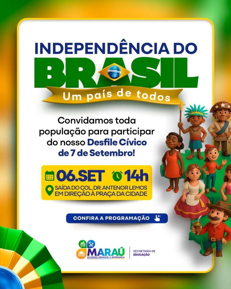A cidade de Maraú já está em clima de festa para comemorar a Independência do Brasil. A Prefeitura de Maraú, em parceria com a Secretaria de Educação, preparou um grande Desfile Cívico que vai reunir a comunidade em um momento de civismo, cultura e patriotismo.
