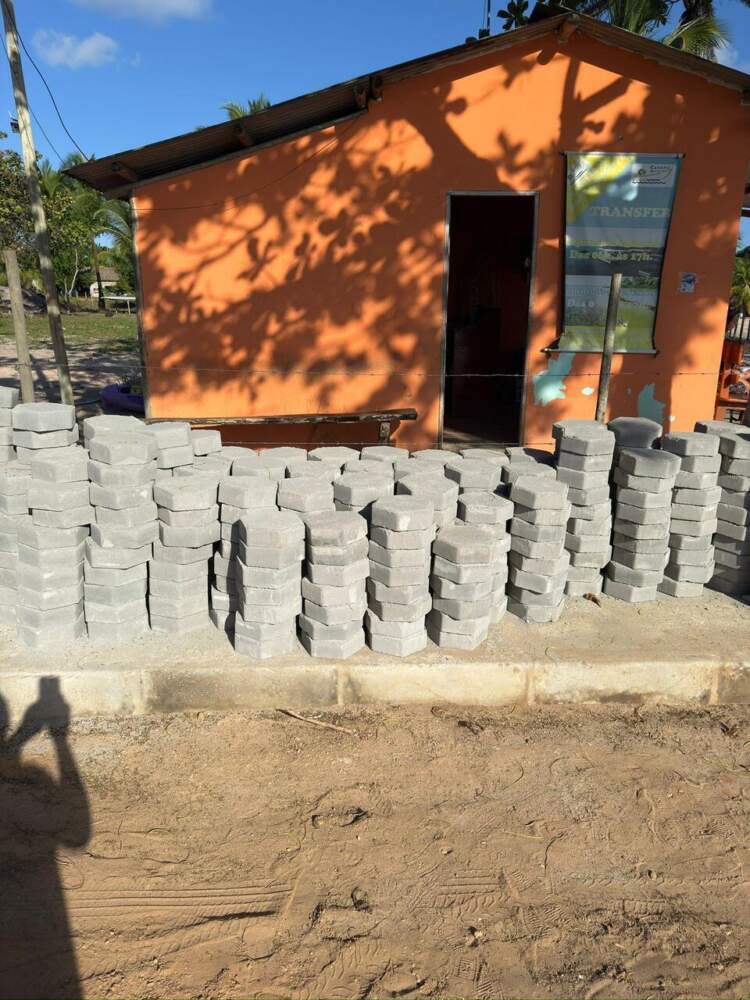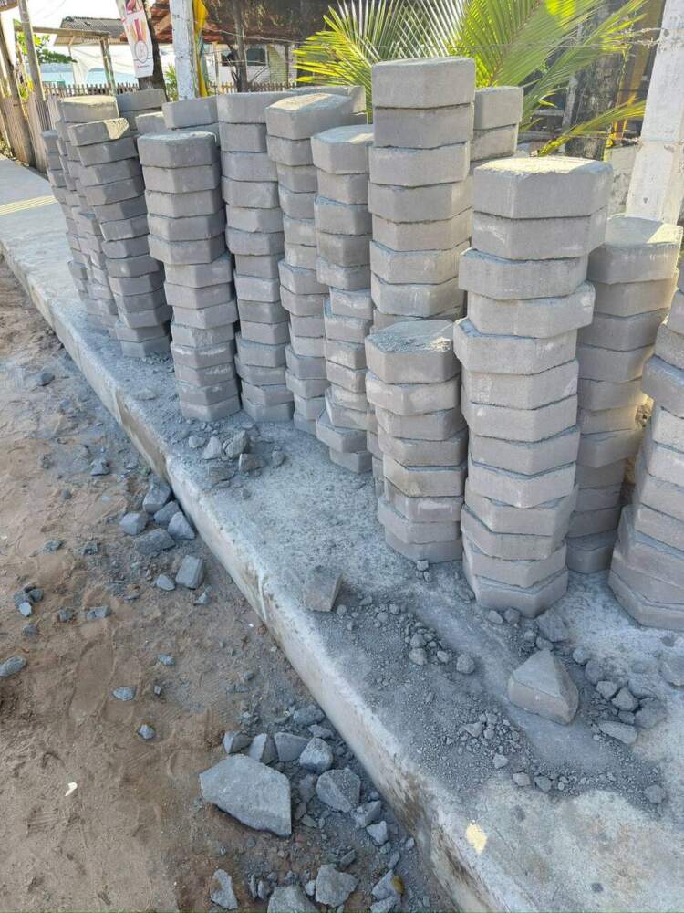 Durante a fiscalização, foi identificado um problema nos bloquetes fornecidos para a obra: o material estava se esfarelando e apresentava baixa resistência, devido à pouca quantidade de cimento ou até mesmo à utilização de cimento de qualidade inferior na fabricação.