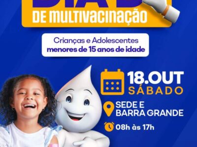 A Prefeitura de Maraú, através da Secretaria Municipal de Saúde, realiza neste sábado, dia 18 de outubro, o Dia D de Multivacinação. A ...