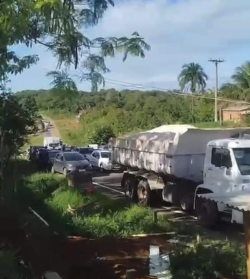 Desde a noite de terça-feira, os manifestantes interditaram completamente a rodovia com pneus, impedindo a passagem de veículos nos dois sentidos. Com isso, um grande número de carros, motos e caminhões ficou parado, formando um longo engarrafamento e impossibilitando o deslocamento entre os municípios.