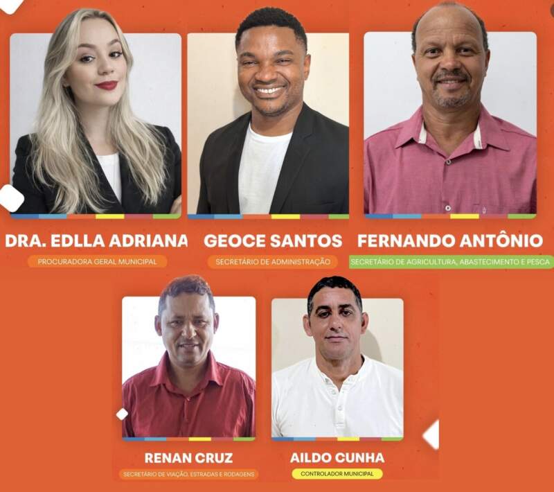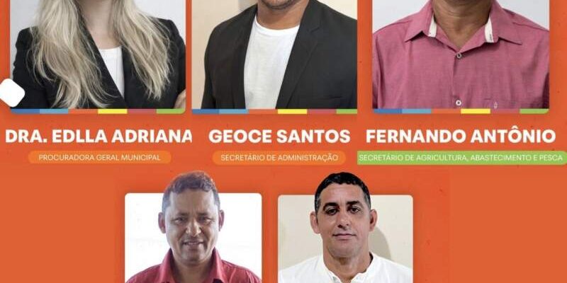 Com as mudanças, Geoce Santos assume a Secretaria de Administração; Fernando Antônio, a Secretaria de Agricultura, Abastecimento e Pesca; Renan Cruz, a Secretaria de Viação, Estradas e Rodagens; e Dra. Edlla Adriana, a Procuradoria Geral do Município. O servidor Aildo Cunha segue como Controlador Municipal, contribuindo para a transparência e o controle interno.
