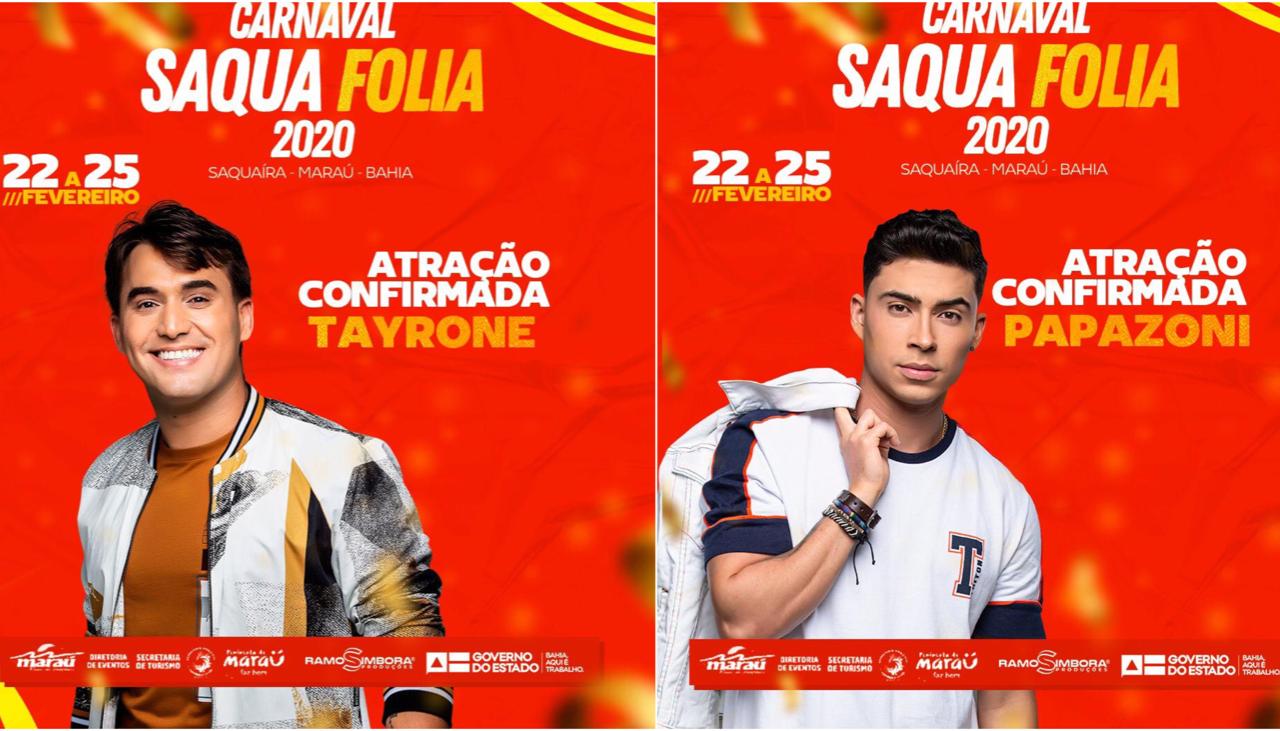 Prefeitura de Maraú confirma Tayrone e Papazzoni como atrações do Saquafolia 2020